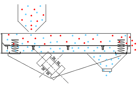 直線振動篩采用雙振動電機驅動,其兩電機軸相對篩面有一傾角,在激振力和物料自重力的合力作用下,物料在篩面上被拋起跳躍式向前作直線運動,從而達到對物料進行篩選和分級的目的。